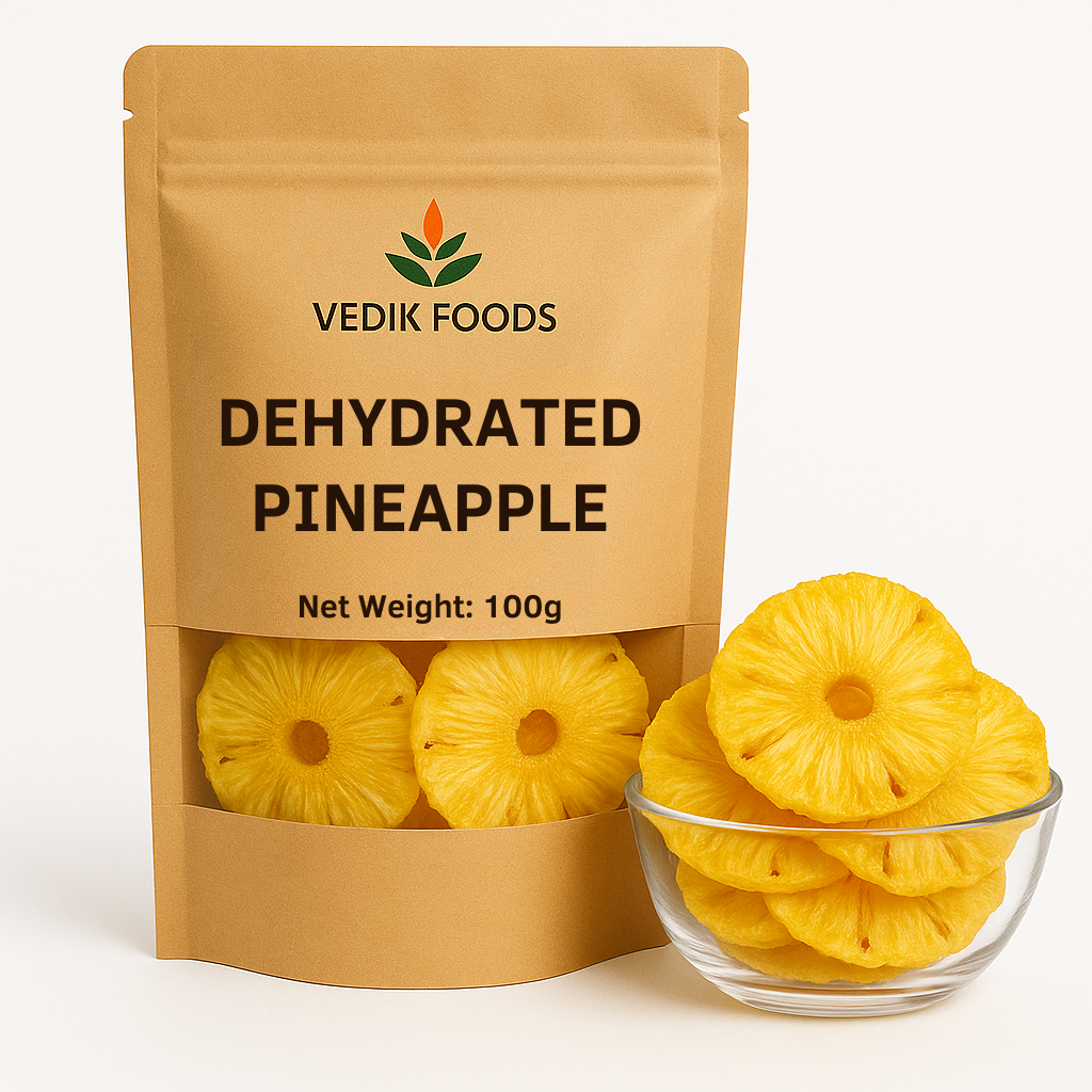 Our Dehydrated Pineapple is processed through a refined Infrared Dehydration Technique that helps retain its bright tropical flavor, natural color, and nutritional integrity. This controlled method reduces heat exposure, allowing the fruit to maintain its vitamins and active enzymes. The result is a clean, delicious pineapple product ideal for snacks, desserts, and premium food formulations.