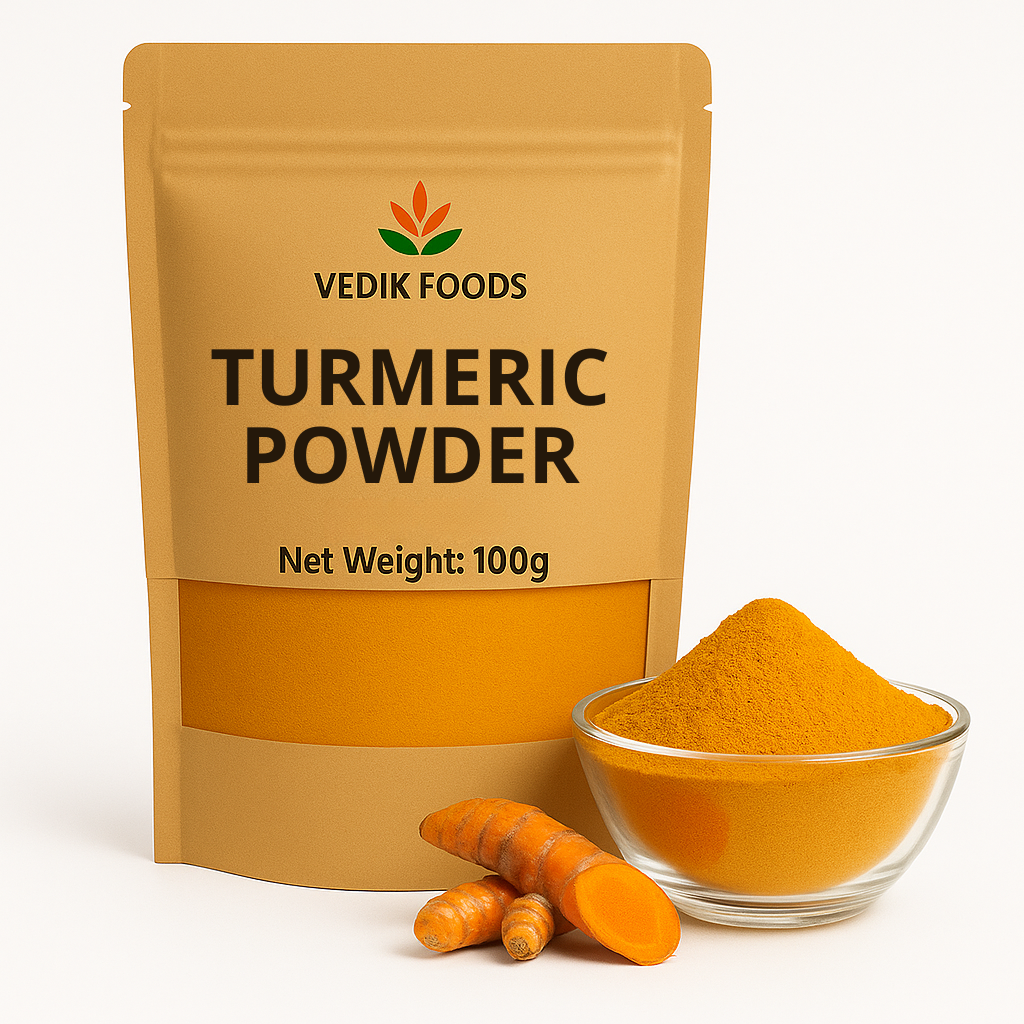Our Organic Turmeric Powder is made from carefully selected turmeric roots and processed using an advanced Infrared Dehydration Technique that preserves its vibrant color, rich aroma, and natural curcumin content. Completely free from chemicals and additives, this nutrient-dense haldi brings authentic flavor and powerful wellness benefits to your cooking. Perfect for daily use, rituals, skincare, and health routines.
